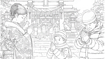 person 家族で初詣|塗り絵 高齢者 無料 印刷