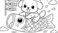 釣りをする猫|塗り絵 高齢者 無料 印刷